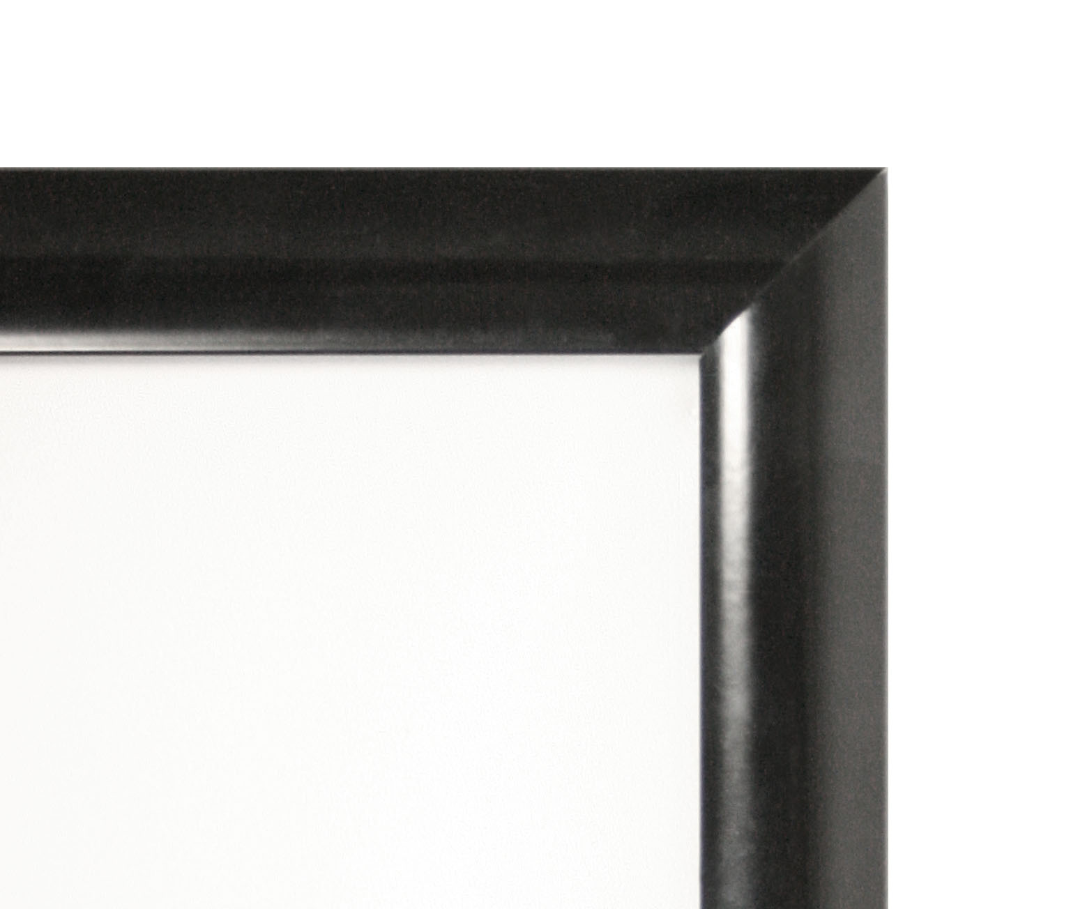 This black square cornered A1 snap frame clips open from the front and around all four sides. The clip frame system makes changing graphics easier without having to remove the frame from the wall each time. These poster frames are also called snap frames or clip frames. They can be displayed in portrait or landscape orientation and come supplied with an anti-glare cover to protect your poster and with mounting hardware. They are ideal for advertising as well as general signage and can be used in a variety of indoor locations for a smart, professional look for your businesses signage.